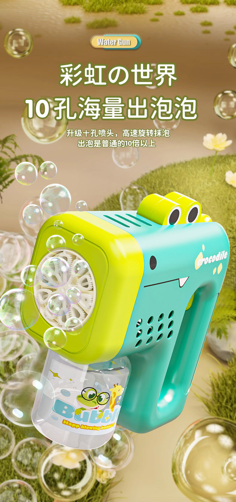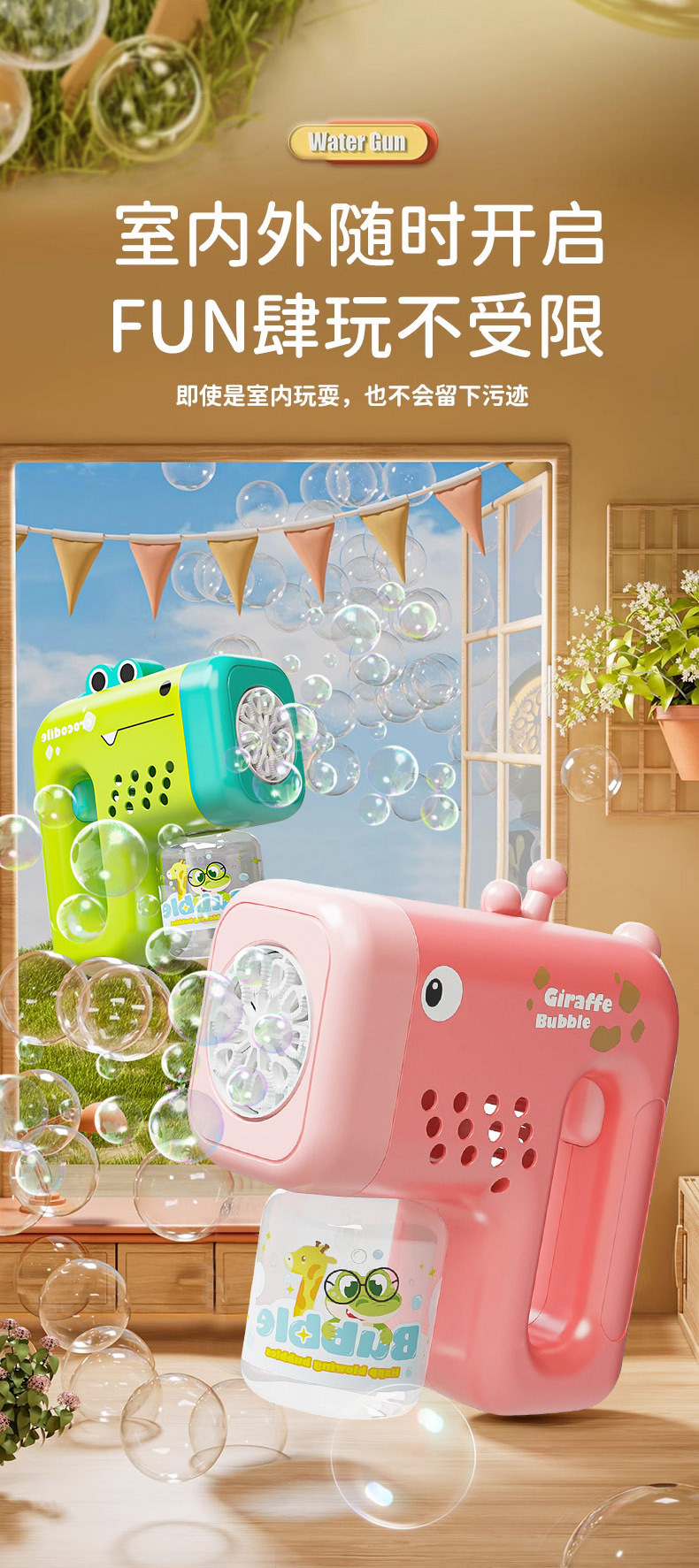 The device demonstrates exemplary usability with over 5000 bubbles per minute production, exceeding standard rate benchmarks in the bubble gun toy category. Battery-operated portability enhances field usage flexibility, particularly for outdoor retail and wholesale distribution channels under kids toys wholesale frameworks. Its ergonomic design supports prolonged use with reduced hand fatigue, making it a viable product in multisession entertainment environments. The leak-proof feature enhances user and parental satisfaction by avoiding soap fluid contact, augmenting the product’s acceptance across international compliance standards prominent in baby toys wholesale markets.