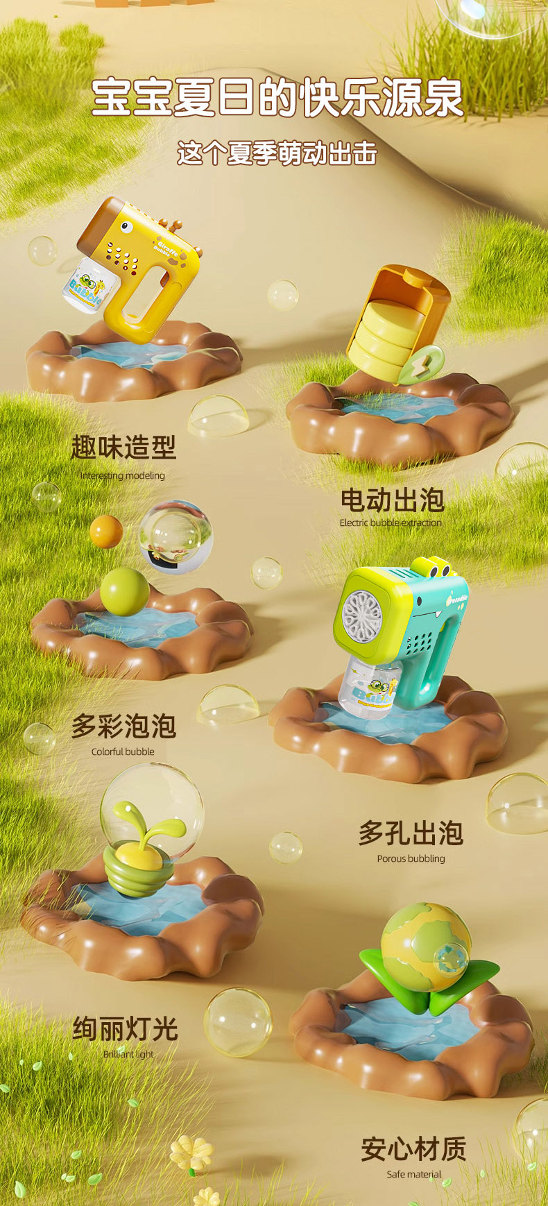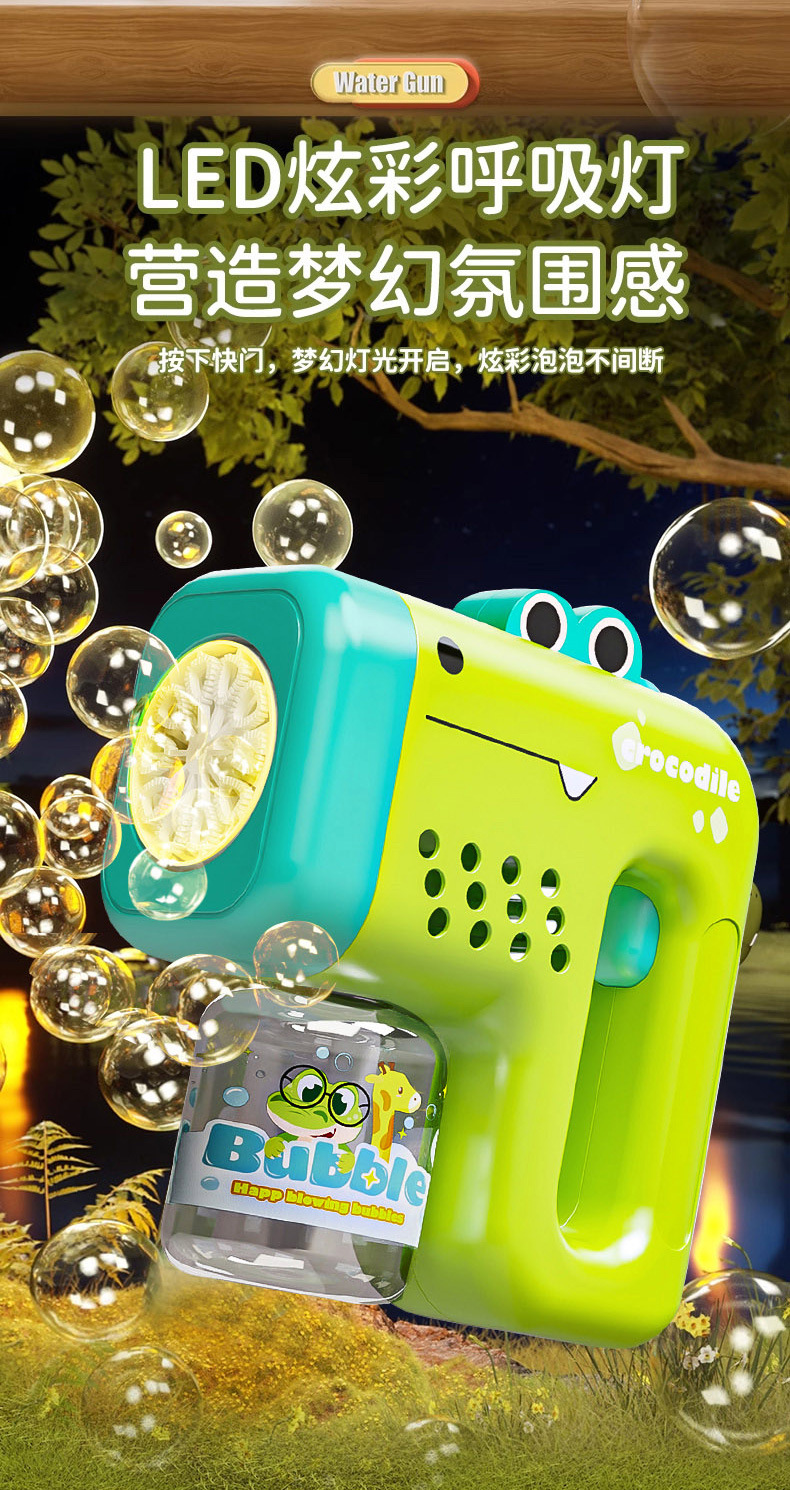 This bubble gun for kids is engineered for active outdoor environments such as parks, playgrounds, and summer parties, specifically designed to encourage social interaction and sensory play among children. The lightweight, compact form facilitates easy handling by young users while its visual appeal, including a deer-themed exterior and LED lighting, enhances engagement. As a product developed by a reputable toy factory in China, it targets wholesale buyers seeking innovative, safe, and interactive factory toys that meet current market demands for outdoor entertainment.